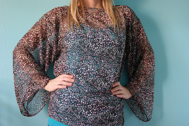:: many thanks to my 4 year old daughter who took the photos (using a tripod) of me modeling the blouse :)
